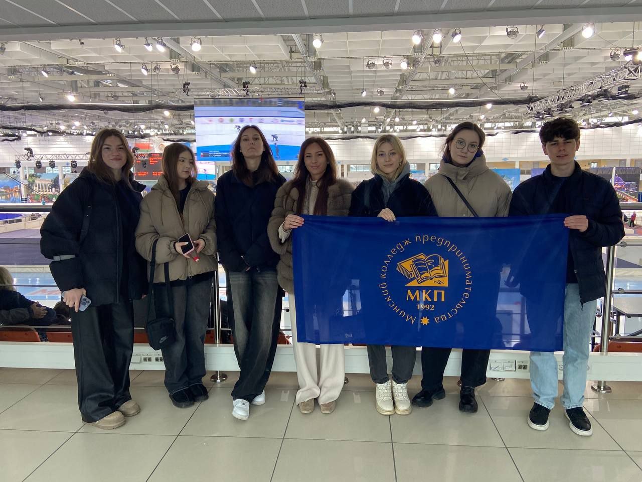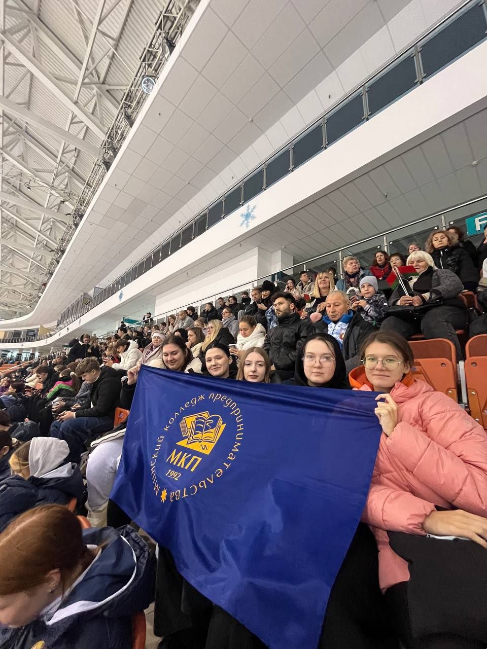 Молодежь Минского колледжа предпринимательства посетила МКСК "Минск-арена" в качестве зрителей соревнований по конькобежному спорту.